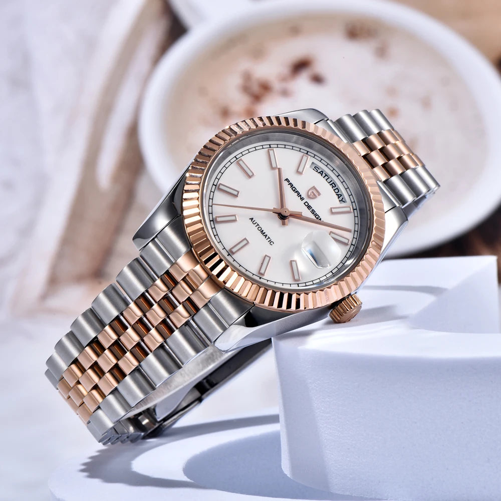 The PD1752 by PAGANI DESIGN is a quiet affirmation of permanence. With its enamel dial, AR-coated sapphire crystal, and automatic mechanical movement, it doesn’t just measure time — it breathes with it.